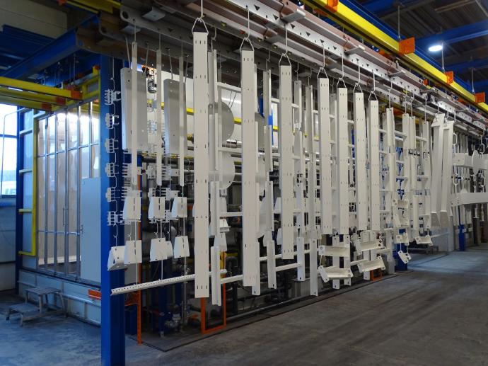 Bauteile sind dabei über die Lackierhaken aus Metall und der