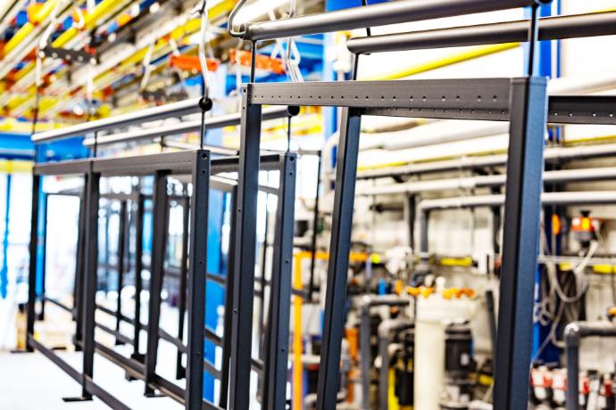 Nun können die Objekte in den Einbrennofen gefahren werden, in welchem das Pulver bei ca. 200°C schmilzt und eine gleichmäßige Pulverlackschicht ergibt. Da kein Nachhärten notwendig ist, können die Objekte, nachdem sie abgekühlt sind, verpackt und versendet werden.
